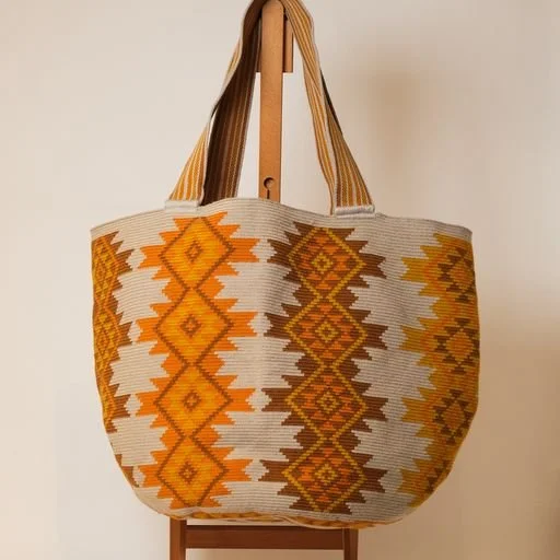 The Wayuu culture is rich in symbolism, tradition and follows a matriarchal society and way of living. These bags are very durable, can be washed on a gentle cycle in washing machine and tolerate a lot of weight. It is made of acrylic tread.